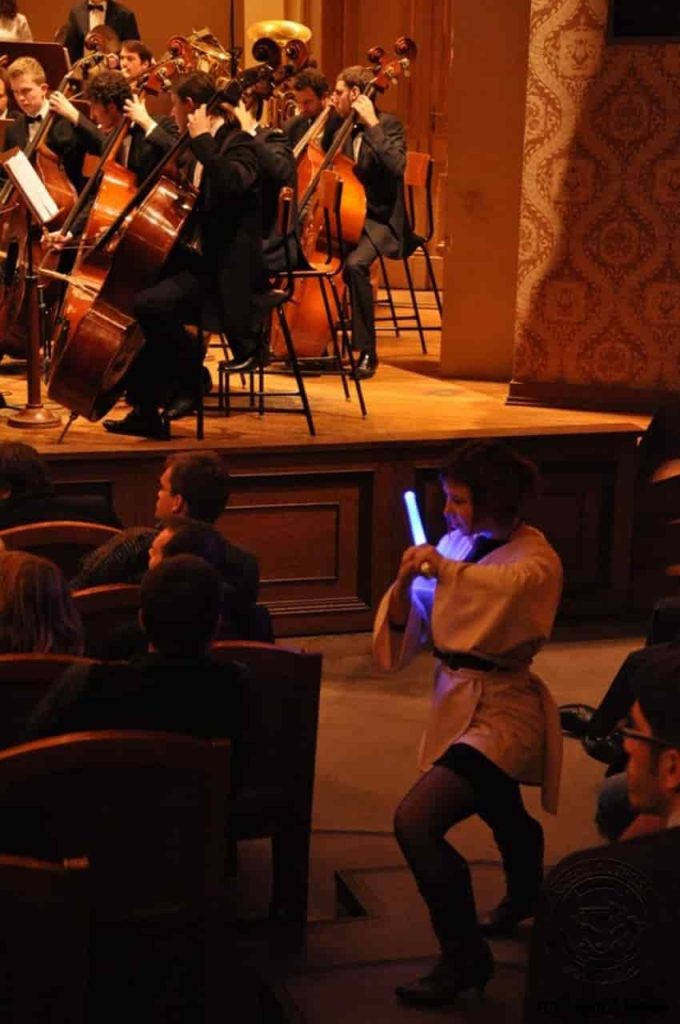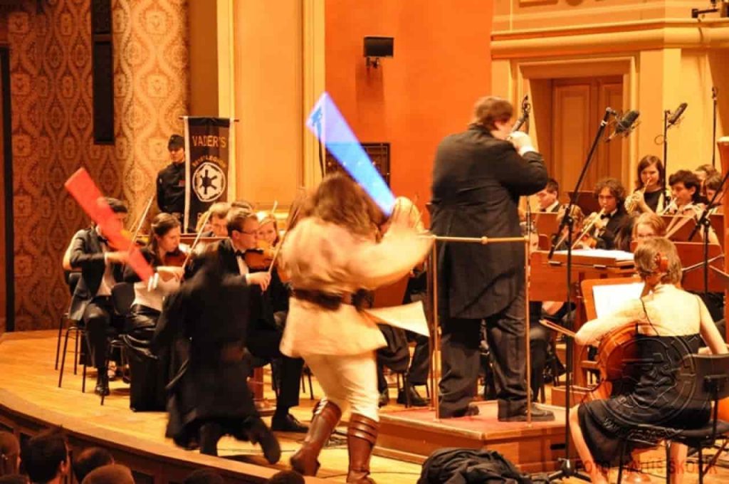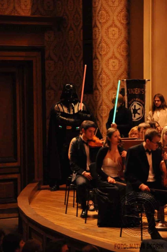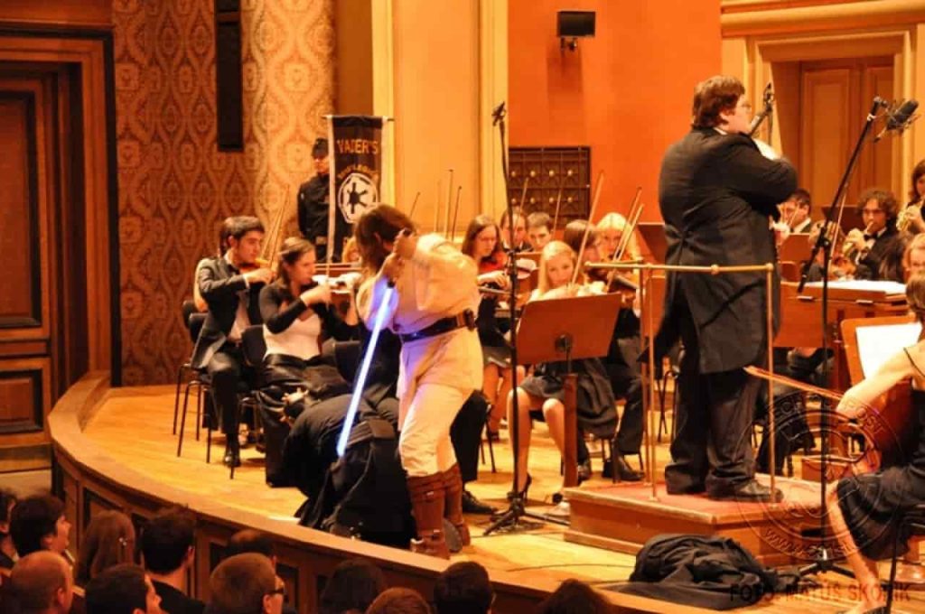 Zejména kvůli dvěma posledním hudebním tématům bylo v Rudolfinu neobyčejně živo, neboť do koncertního sálu zavítaly přímo postavy z těchto filmů. V první polovině koncertu si Piráty z Karibiku přišel poslechnout proslulý kapitán Jack Sparow. Po přestávce se, když začal orchestr hrát motivy ze světa Star Wars, objevil se samotný Lord Darth Vader v čele svých stormtrooperů a v doprovodu tajemné bytosti zahalené v plášti. Zjevně nespokojený s dosavadním výběrem spíše neimperiálních skladeb, nahradil Lord Vader dirigenta svým novým sithským učedníkem a sálem se rozezněl proslulý Imperial March. Teprve poté se směl dirigent vrátit a zahrát skladby jako Throne Room, Duel of the Fates, Across the Stars a Battle of Heores, kde kromě skvělého hudebního zážitku mohli diváci rovněž sledovat i hrané výjevy z filmu, od předávání medailí za zničení obávané bitevní stanice Hvězdy smrti, romantické procházky senátorky Padmé Amidaly s Anakinem Skywalkerem, až po souboje mezi Sithy a rytíři Jedi, jež se v této galaxii odehrávají již tisíce let.\n\n